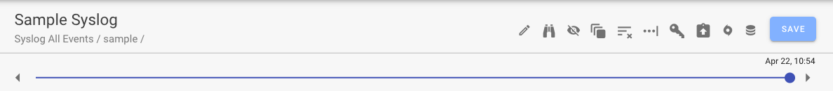 The timeline scrubber permits you to jump to the start or end of the log file or any arbitrary date in between. Changing the scrubber modifies the highlighted current line in the log file. Clicking on the scrubber date box will display a date and time edit dialog.